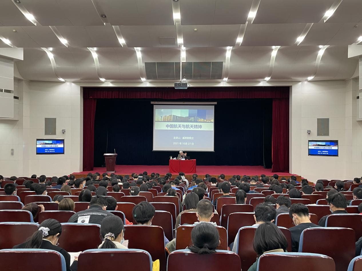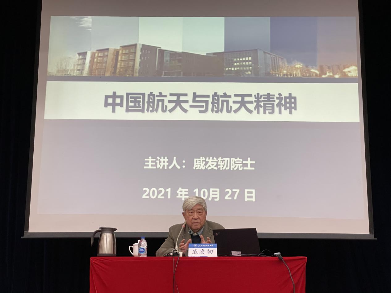 2021年10月27日上午,戚发轫院士走进北航学术交流厅为beat365“思想道德与法治”和“习近平新时代中国特色社会主义思想概论”课的近400名大一新生主讲“中国航天与航天精神”的大思政课。