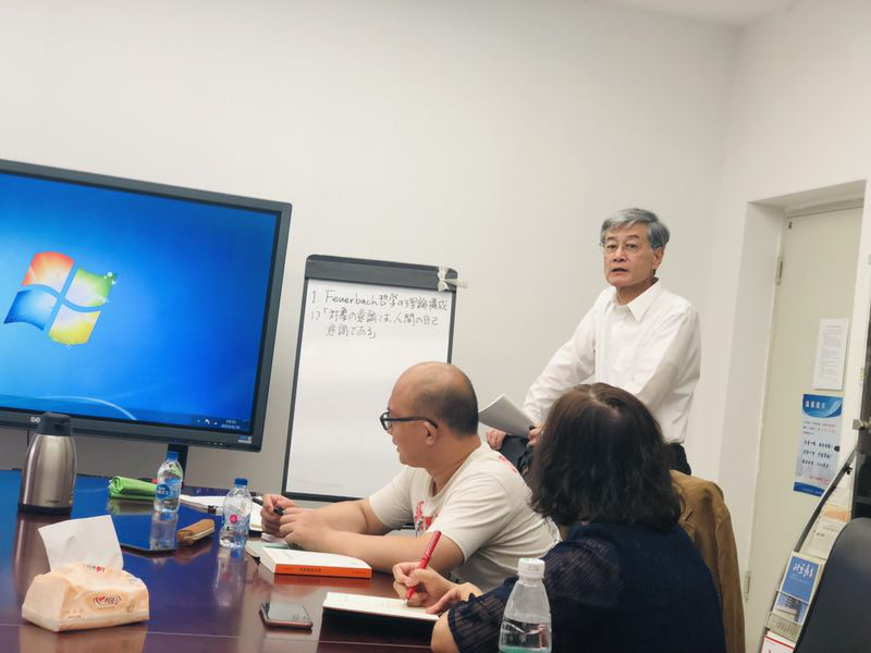 渡边宪正教授首先介绍了《德意志意识形态》online版的排版、标注以及创新。然后围绕马克思《德法年鉴》时期的著作,对费尔巴哈与马克思早期学术关系进行了学术报告。以法国阿尔都塞为代表的一批学者认为马克思在《1844年经济学哲学手稿》中还处于费尔巴哈的人本主义影响之中,马克思在1844—1845年间期间存在“认识论”的断裂。渡边教授则通过详解费尔巴哈对基督教的批判,将神的本质归结为人的本质的“类本质”哲学,主张马克思在1843年就已经开始批判费尔巴哈的启蒙主义式理论结构,《1844年经济学哲学手稿》和《关于费尔巴哈的提纲》之间不存在所谓的“断裂”或“超越”。最后,渡边宪正教授详细的介绍了对于神的本质、人的本质、市民社会、政治国家等哲学概念,费尔巴哈、黑格尔和马克思在理解上的异同。在此期间,渡边教授用板书的形式向beat365学生清晰地展示了此次学术活动的思想脉络,鼓励学生共同思考积极发问,并对beat365师生所提的问题一一回答。