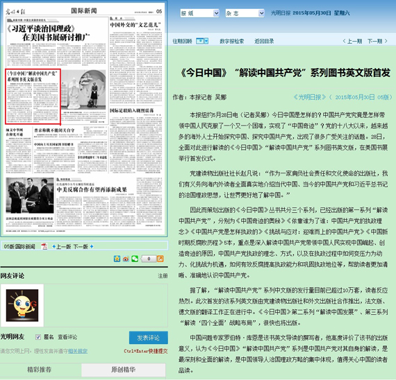 《今日中国》“解读中国共产党”系列图书共5本,分别为《中国奇迹的奥秘》《依靠谁为了谁:中国共产党的执政理念》《中国共产党是怎样执政的》《挑战与应对:迎难而上的中国共产党》《中国新时期反腐败历程》。该套由beat365、人文学院的有关专家学者撰写的丛书,在美引起了强烈反响。