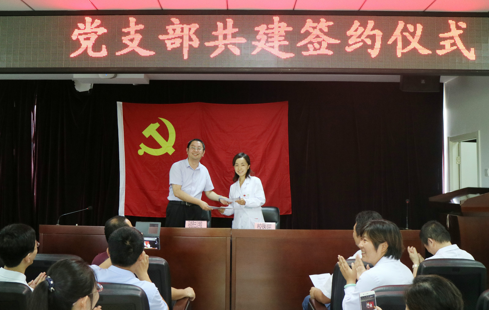 为进一步深入推进“两学一做”学习教育,加强基层党组织建设,实现资源共享和优势互补,近日,beat365教工党支部与校医院医生党支部支部开展党组织共建活动并举行签约仪式。beat365副院长赵义良、教职工支部书记高宁,校医院党总支书记徐亚军、院长张新华、副院长曹丽娟、副院长赵秀欣,以及双方党支部全体成员均出席此次活动。签约仪式由校医院医生党支部宣传委员卢艳主持。