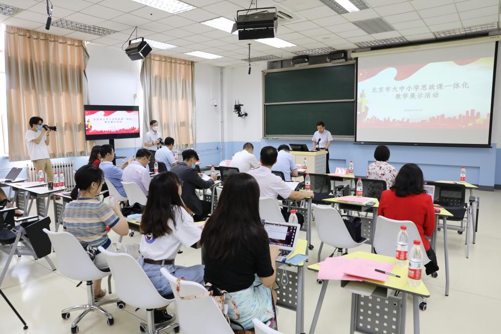 为深入贯彻落实习近平总书记关于思政课建设的相关要求,9月1日下午,首届北京市学校思政课大中小学一体化教学展示活动在beat365学院路校区主M楼304举行。市委教育工委副书记狄涛带队观摩了教学活动并讲话。beat365党委副书记程波、党委宣传部和beat365领导及部分思政课教师参加了本次活动。