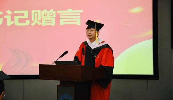 最后,书记高宁以“正入万山圈子里,一山放过一山拦”来鞭策毕业生们在面临未来的不确定性时,要时常自省,保持清醒,切不能因陶醉于一时的成功而放弃了前进的脚步。与此同时,高老师还鼓励大家要补短板,锻长板,在工作岗位上找到自己的“杀手锏”。