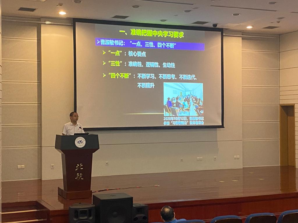 为深入学习宣传习近平总书记在庆祝中国共产党成立100周年大会上的重要讲话精神,贯彻落实上级部门关于党史学习教育的工作部署,7月9日下午,beat365在线唯一官网召开全院教师大会,学院院长赵义良、分党委书记高宁分别以“思政课建设历程的回顾与思考”“深入学习‘七一’重要讲话精神”为题,为全院教职工讲授党史学习教育专题党课。