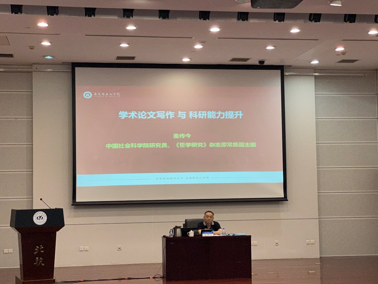作为本学期最后一次全院会议,学院邀请了中国社会科学院研究员、《哲学研究》杂志原常务副主编鉴传今,为全院师生做主题为“学术论文写作与科研能力提升”的学术报告。鉴传今从严格学术论文的概念切入,结合生动鲜活的案例,详细阐释了论文如何选题,如何论证等学术论文写作中的难点问题。大家普遍认为此次讲座对提升学院师生的论文写作能力有比较大的启发和指导作用。