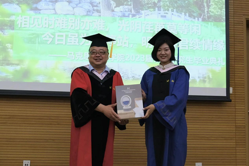 随后,毕业生代表巩晗,代表全体毕业生向学院表示衷心感谢,祝福学院越办越好。任课教师代表徐宏潇、王江伟,辅导员孙润南以及班主任刘浩然分别发言,回忆了过去两年的难忘时光,希望毕业生珍惜韶华、接续奋斗、追求卓越,在未来的职业发展中取得新的突破。典礼在掌声中结束,师生共同合影留念记录这难忘一刻。