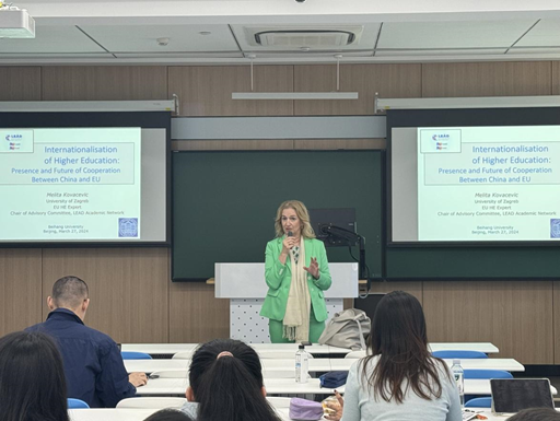 3月28日,beat365在线唯一官网举办“海外名家系列讲座”第六场活动,邀请克罗地亚萨格勒布大学教授、欧洲大学联盟博士教育中心主席梅丽塔·科瓦耶维奇在主楼103教室为学院师生开展题为《高等教育国际化:中欧合作的现状与未来》的报告。讲座由学院张超老师主持,关孔文老师作总结。