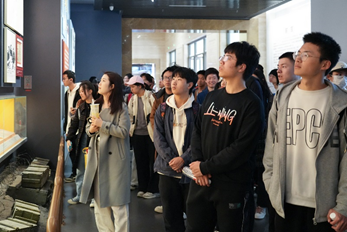 师生在馆内集体参观了“为新中国奠基——中共中央在香山”基本陈列、“永葆青春活力——香山时期中国共产党自我革命实践”专题展览。在讲解员的带领下,师生回顾了中共中央“进京赶考”的历史足迹,重温了中国共产党人不忘初心、牢记使命的责任担当,体悟了中国共产党勇于自我革命的鲜明品格。参观途中,学生途经北平和平解放时市民欢迎解放军入城的蜡像陈列,会情不自禁地举起手试图与之“隔空击掌”;看到全国各大城市相继和平解放的表格,会热议革命先辈们在自己的家乡留下的那些红色痕迹;读到党的领导人决策指挥的文献手稿,会赞叹于革命伟人身上流露出的鲜明特色和风格。当教材中的名字、课堂上的故事、老师讲授的理论,一一具象化为眼前真实可感的文物、图片、影像,学生们都深受触动。