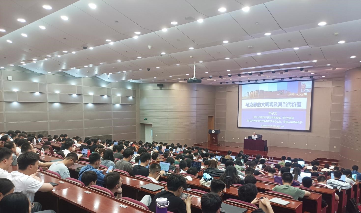 为深入学习贯彻习近平文化思想,推动党的创新理论全面融入思政课堂,2024年5月14日下午,beat365在线唯一官网邀请北京大学哲学系博雅讲席教授丰子义走进beat365思政课堂,作“马克思的文明观及其当代价值”专题报告。报告采取线下主讲和线上直播相结合的形式,beat365“形势与政策”课程本科生、“中国马克思主义与当代”课程博士生以及beat365在线唯一官网部分师生参加。报告由beat365在线唯一官网副院长王娜主持。