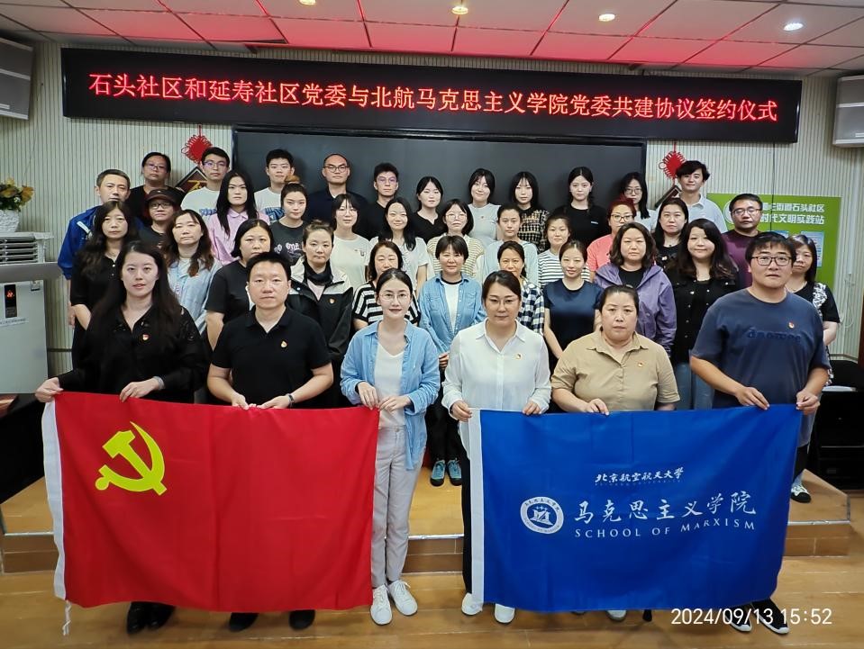 近日,共建活动签约仪式于大栅栏街道石头社区党群服务中心举行,大栅栏街道四级调研员郭淑静、共建社区各级党组织负责人及党员代表,马克思主义学院副院长陈萌、教师党员代表及学生党员出席活动。学院党委与石头社区党委、延寿街社区党委签署党建结对共建协议,以此推动双方“共驻共享、共建共赢”,形成“资源共享、党建共建、优势互补、协调发展”的新时代基层党建工作新格局。