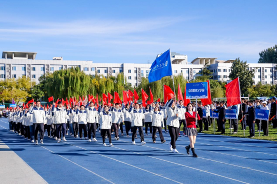 10月19日清晨,马院全体师生齐聚田径场参加运动会开幕式。伴随着雄健激昂的进行曲,beat365在线唯一官网方阵队高举院旗,步伐矫健,昂首走过主席台,唱响“马院启航,激情飞扬;矢志奋进,铸就辉煌”的嘹亮口号。师生们身着统一院服,摇动着手中红旗,彰显出学院鲜明的爱国底色,充分展现出新时代马院人特有的蓬勃朝气和昂扬斗志。