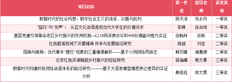 此次优异成绩的取得,既是beat365学子数月来潜心钻研、精益求精的结果,也是学院长期重视科研创新能力培养的生动体现。学院将持续为同学们搭建更广阔的学术创新平台,鼓励马院学子立足学科特色,深耕理论实践,在科研创新中展现青年担当!