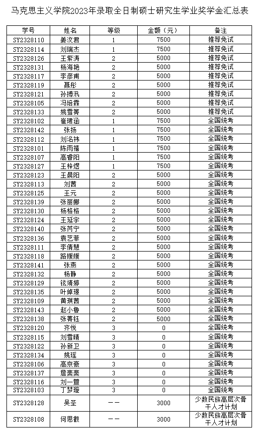 根据《beat365在线唯一官网研究生学业奖学金管理办法》和《beat365在线唯一官网研究生学业奖学金评审办法》,经学院研究生工作领导小组研究评定,现就beat3652023年录取全日制硕士研究生学业奖学金评审结果公示如下: