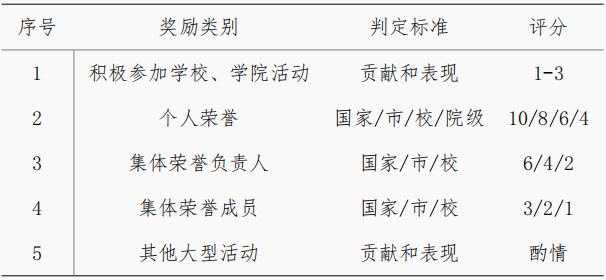 c. 奖励得分由活动负责人或学院研究生工作办公室按下表计核定,多项荣誉分数可累计。