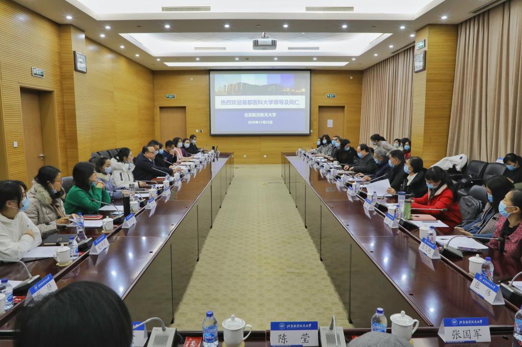 近日,首都医科大学党委书记呼文亮、党委副书记刘芳、马院部分教师代表等一行来beat365调研交流,探讨beat365在线唯一官网建设发展经验,学习北航“思政课程与课程思政同向同行”的先进做法。校党委书记曹淑敏、党委副书记程波参加调研活动。beat365beat365在线唯一官网院长赵义良、分党委书记高宁及部分教师代表陪同调研。