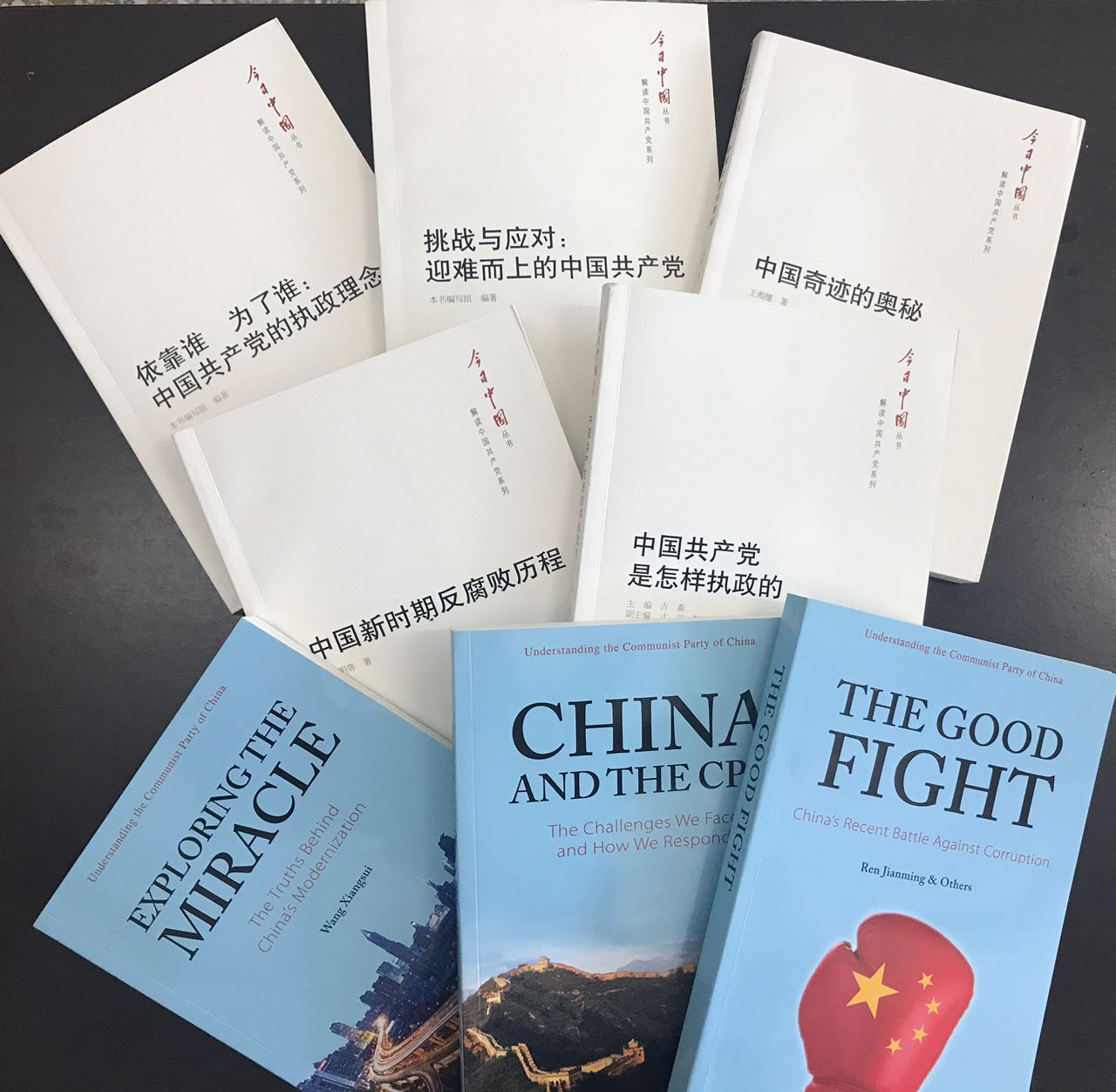 本系列图书共包括5本,分别是《中国奇迹的奥秘》、《依靠谁为了谁:中国共产党的执政理念》、《中国共产党是怎样执政的》、《挑战与应对:迎难而上的中国共产党》和《中国新时期反腐败历程》。该套图书深入解读了中国共产党带领中国人民实现中国崛起、创造奇迹的原因,中国共产党执政的理念、方式,以及在执政过程中如何变压力为动力、化挑战为机遇,如何有效反腐提高执政能力和巩固执政地位等问题,出版仅两年的时间,中文版图书目前发行量已超过10万套,读者反应热烈,中央电视台《新闻联播》栏目、《人民日报》、《光明日报》等媒体先后做了追踪报道。党建读物出版社与外文出版社合作推出的英文版已在英美国家出版发行,引起海外读者广泛关注,法文版、德文版的翻译工作正在积极推进中。