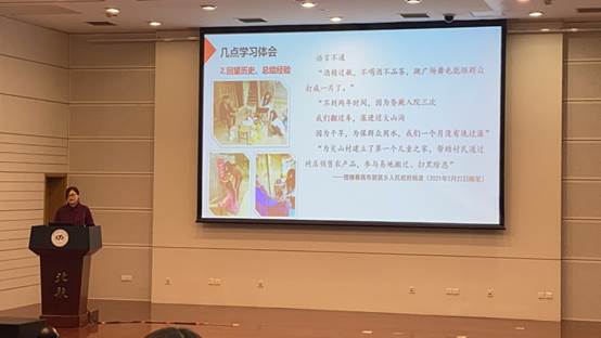 最后,高宁书记就党史学习教育、党支部规范化建设、落实“学习日”等布置了本学期党建工作要点。随后,徐宏潇老师领学《习近平在河北省阜平县考察扶贫开发工作时的讲话》和《习近平在全国脱贫攻坚总结表彰大会上的讲话》,号召全体教职工弘扬脱贫攻坚精神,团结一心、英勇奋斗。