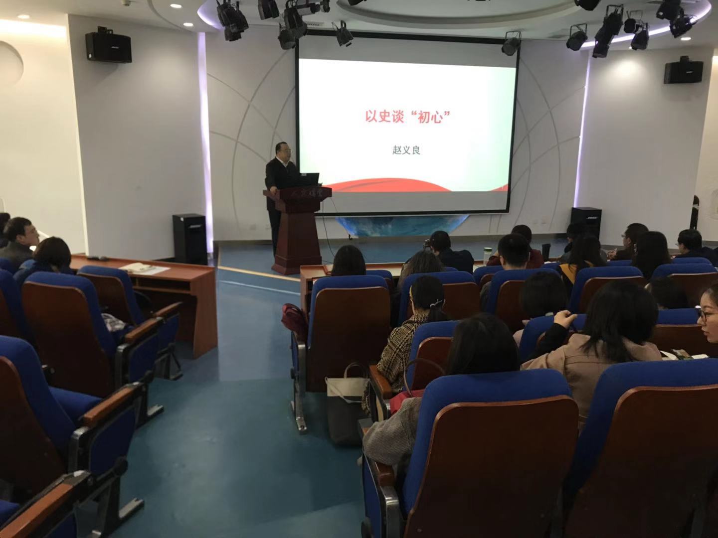 赵义良副院长作《以史谈“初心“》学习报告,从“初心”一词的提出与内涵谈起,指出我们党自成立之日起就把为人民谋幸福、为民族谋复兴的初心写在了党的旗帜上,融入了党章和党的纲领中。报告进一步以丰富的史料,揭示了苏联布尔什维克党背离初心导致历史悲剧给我们的警示、中国革命时期初心松懈给我们的教训,提出新时代践行入党誓词,学习模范人物,做到不忘初心、牢记使命的实践路线。报告的最后,赵义良副院长勉励全院教师践行北航马院人的“初心”行动,就是高质量开好思政课,传道授业解惑,科研与教学紧密结合,尽快建成与北航地位相匹配的一流beat365在线唯一官网,打造马克思主义理论研究和思想政治理论课的“北航学派”,为培养“两领”人才和勇担民族复兴大任的时代新人作出贡献。