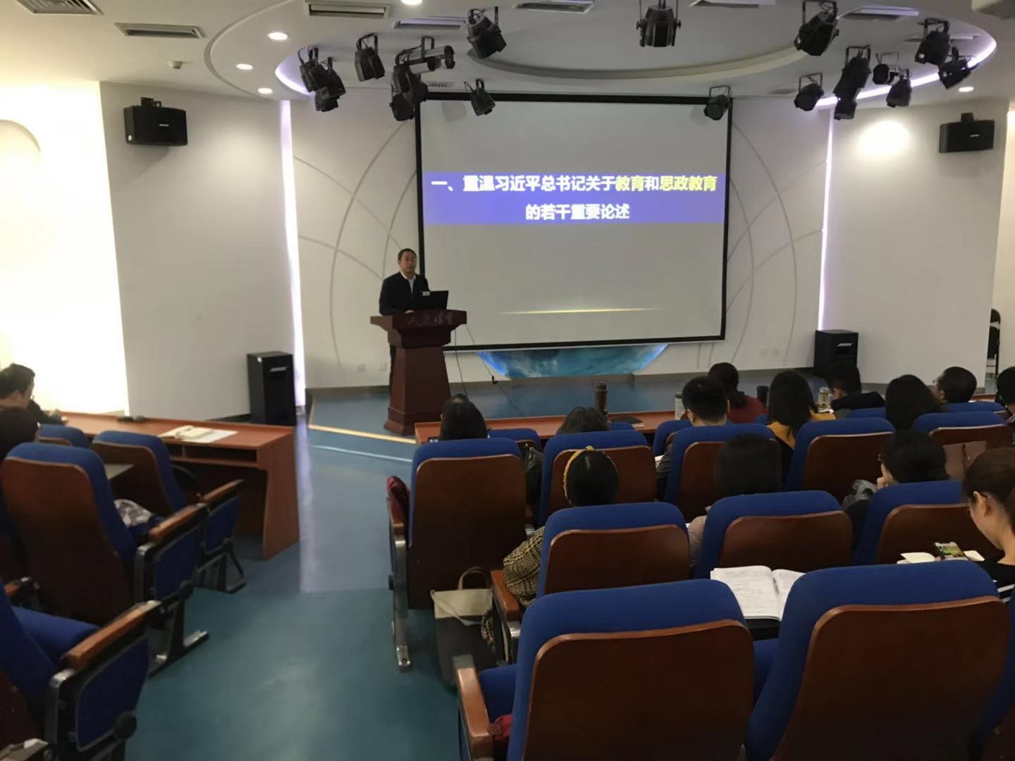 高宁书记以《落实立德树人根本任务推动新时代思政课改革创新》为题,带领全院教师重温了习近平总书记关于教育和思政教育的若干重要论述,阐述了为什么要以及如何在与课程思政的融合发展中,推动思政课改革创新。报告指出,思政课重点在“思”,目标在“政”,要着重提高学生的“思想政治素质”;北航的思政课教师要强化新时代思政课教师的知识基础,充分认识强国支柱与工信部高校使命的关联内涵;在深入挖掘航空航天精神中蕴含的育人资源,在课程思政的大国重器中帮助学生增强制度自信。