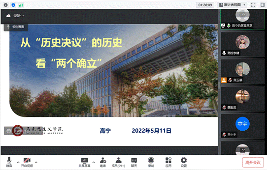 高宁在报告中首先阐释了“历史决议”的重要性,并突出了学习贯彻十九届六中全会精神“最重要的是深刻理解和把握‘两个确立’的决定性意义”,“最根本的是要把‘两个确立’在思想上固牢扎深、在行动上坚定落实”。报告主体部分,高宁围绕“如何理解‘两个确立’”这一主题,分别从“确立指导思想和领导核心是三个‘历史决议’共同的历史任务”,“新时代‘两个确立’的实践基础与十九届六中全会的理论创新”两大部分展开,使与会师生对“两个确立”的决定性意义有了更深刻的理解、对贯彻落实全会精神有了更强烈的行动自觉。
